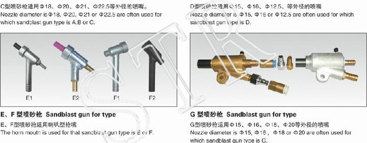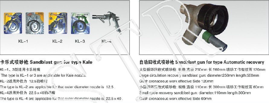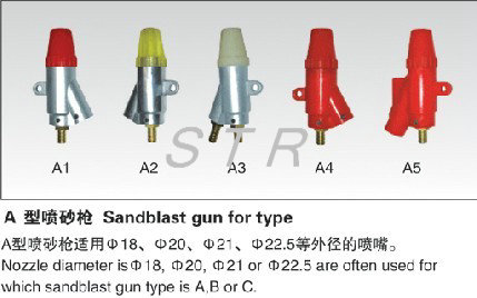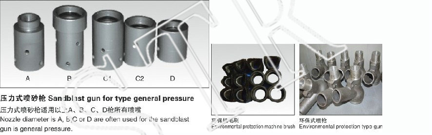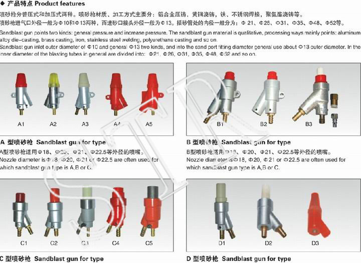 噴砂槍分普壓式和加壓力式五種。噴砂槍的材料、加工處理的方法最主要的分:鋁不銹鋼材料壓鑄,銅合金澆鑄,鐵、不銹鋼材料點焊,橡膠澆鑄等。