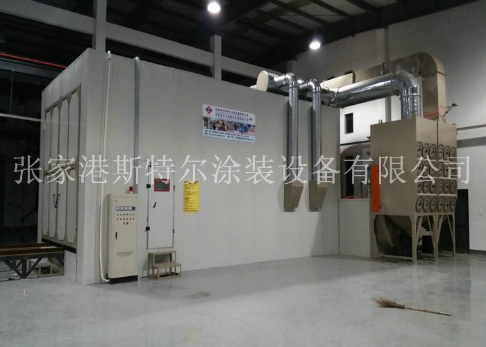 主要配置有雙缸噴砂機系統,分區除塵系統、噴砂房體裝置、控制系統、蜂窩地板回收裝置、輸送系統等組成。 主要是用于不銹鋼壓力容器噴砂處理,印染設備機械噴砂房,使用玻璃珠專用磨料的噴砂房。
